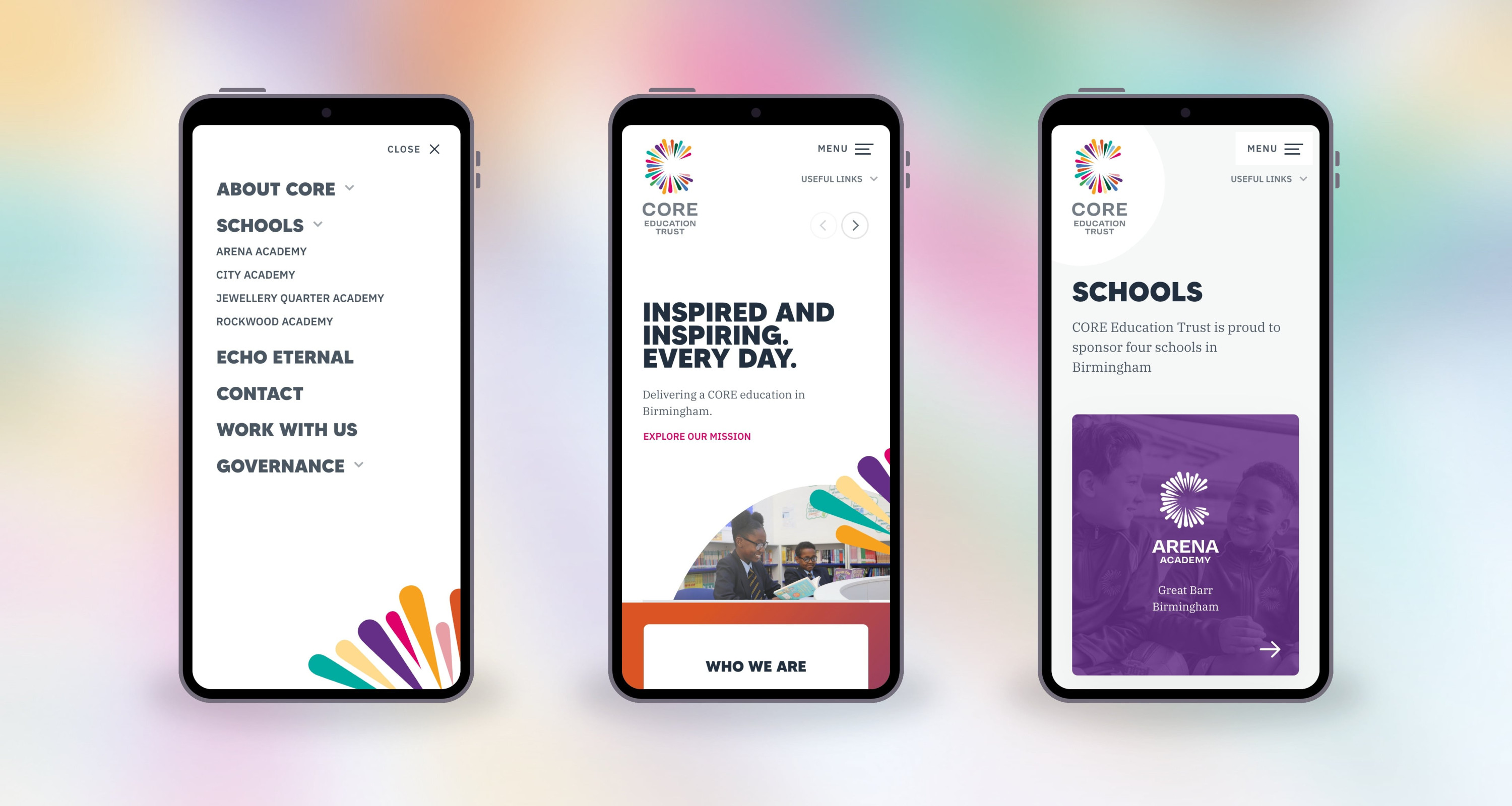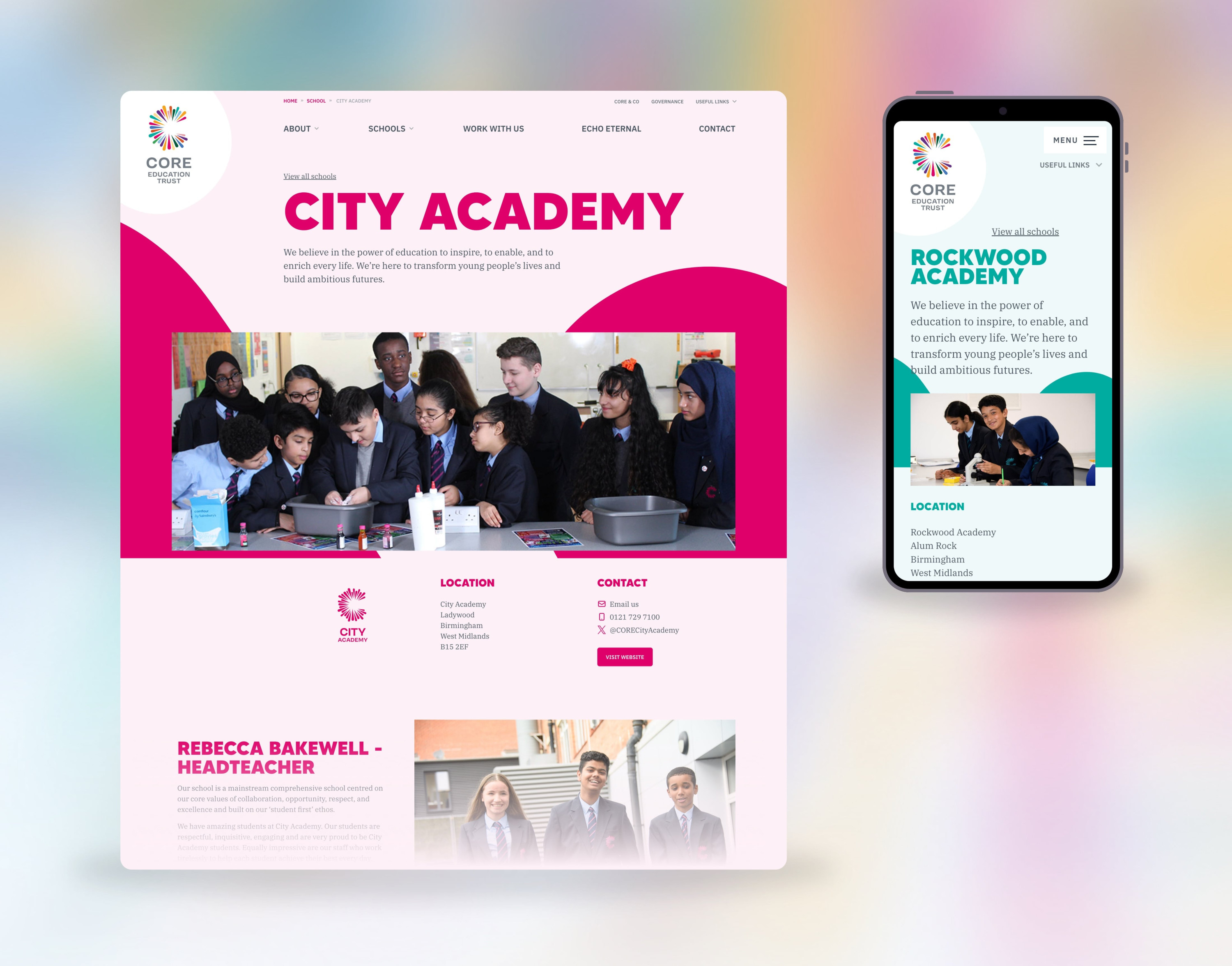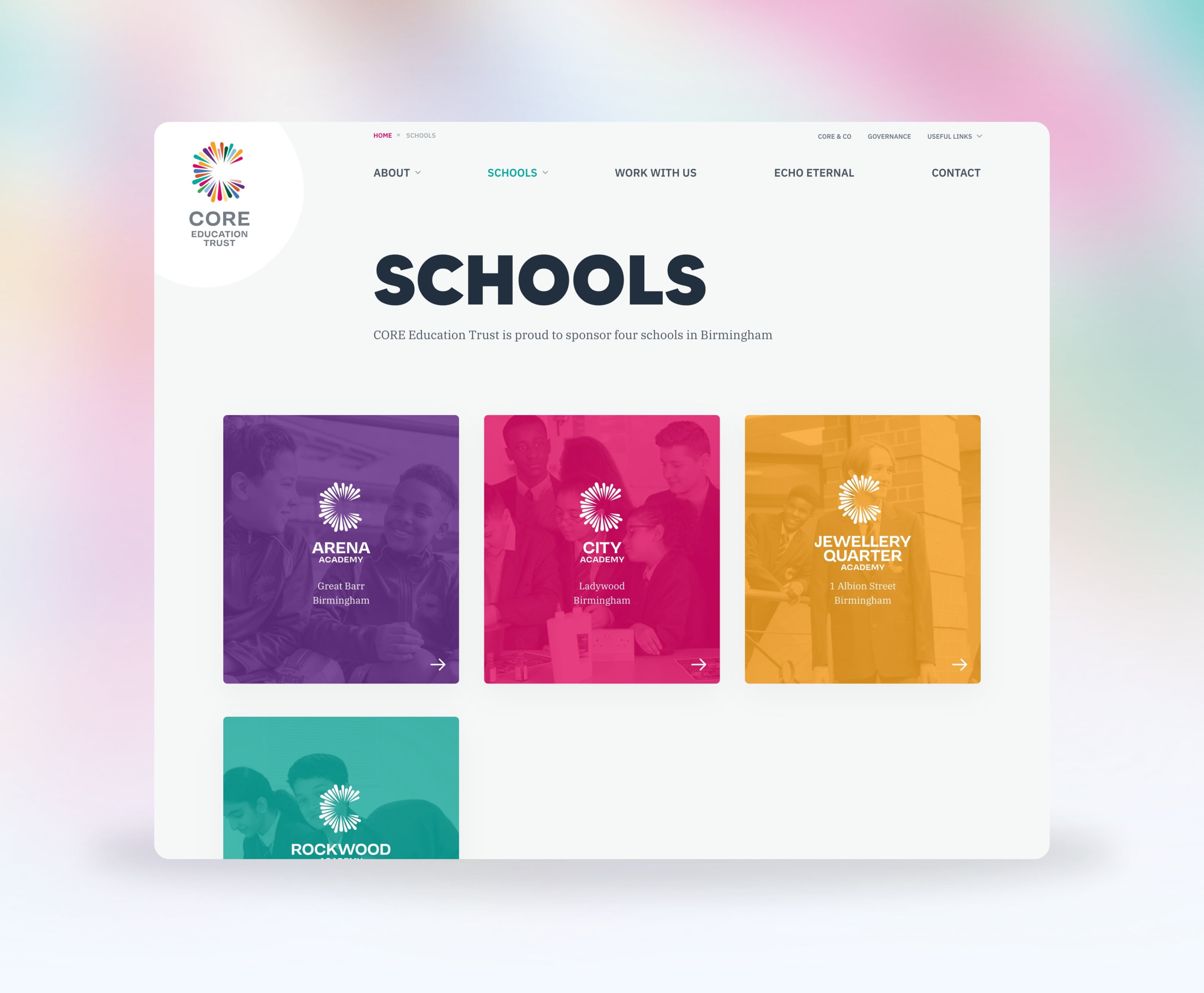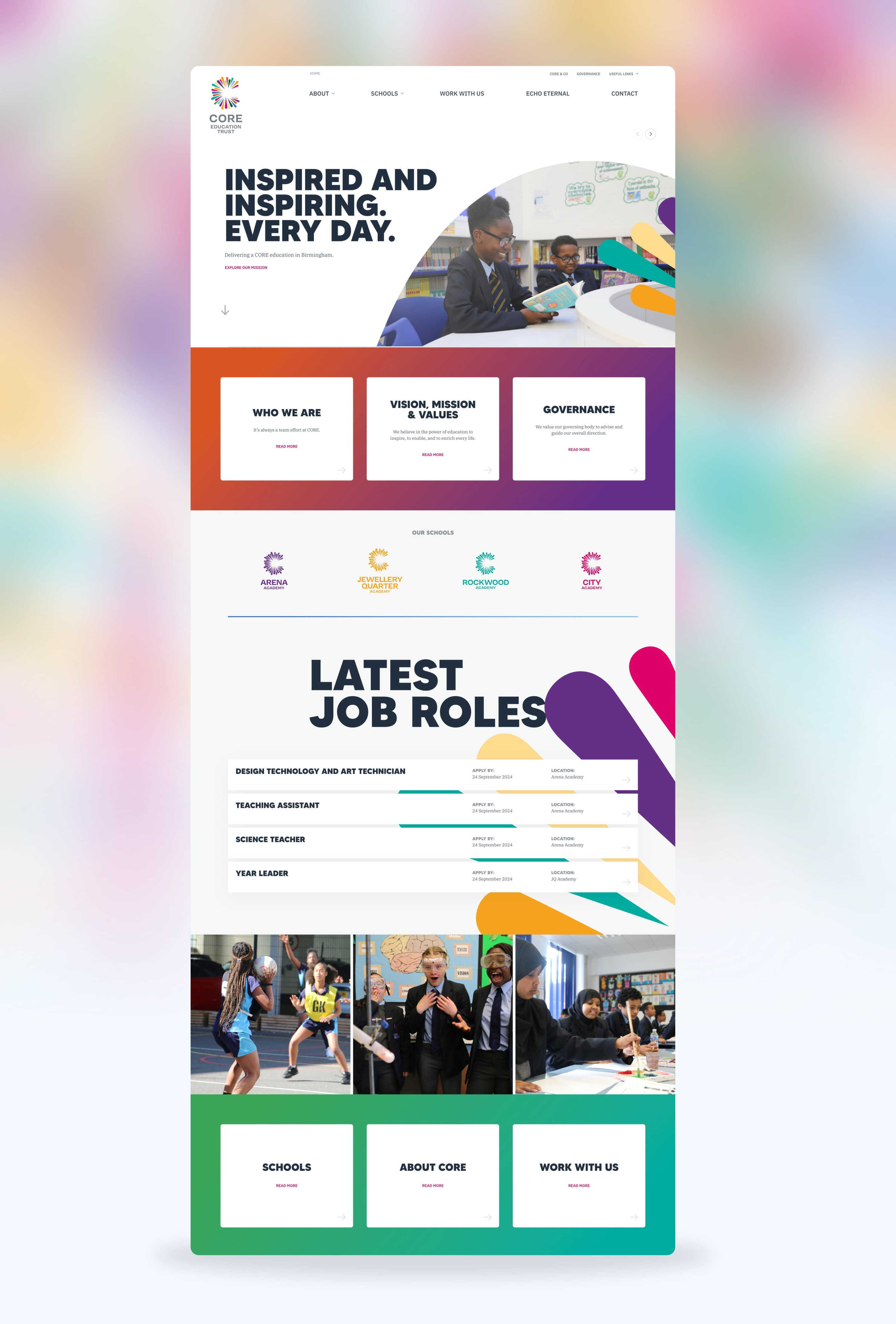 CORE education is an academy of 4 schools in Birmingham, with fantastic energy, and an equally big and bold brand. I worked closely with the brand designer Luke Tonge to create something that felt aligned with the excitement of the brand, whilst still being easy to use and navigate.