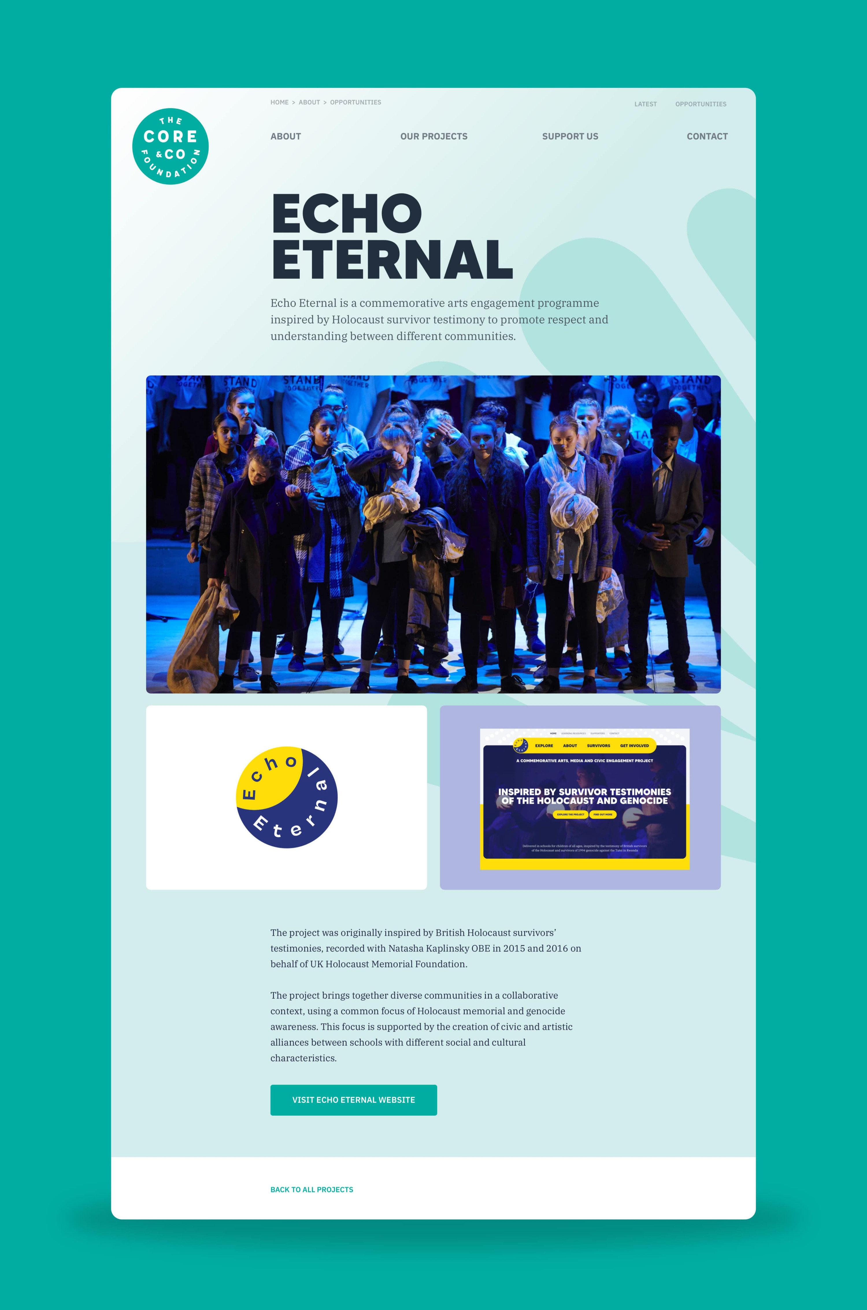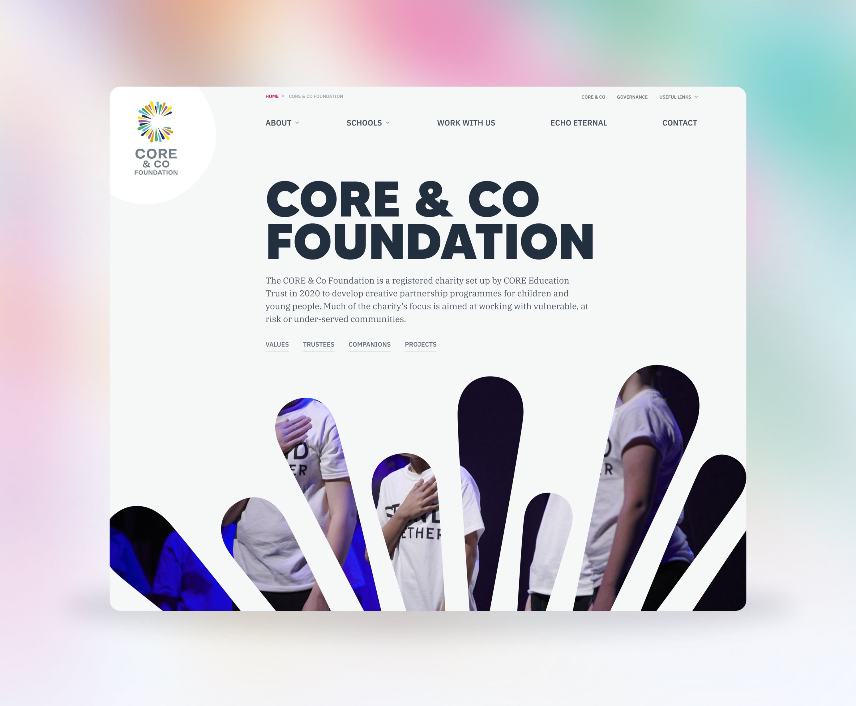 The CORE & Co Foundation is a registered charity set up by CORE Education Trust in 2020 to develop creative partnership programmes for children and young people. Much of the charity’s focus is aimed at working with vulnerable, at risk or under-served communities. The charity has also supported the development of programmes such as the award-winning Echo Eternal.