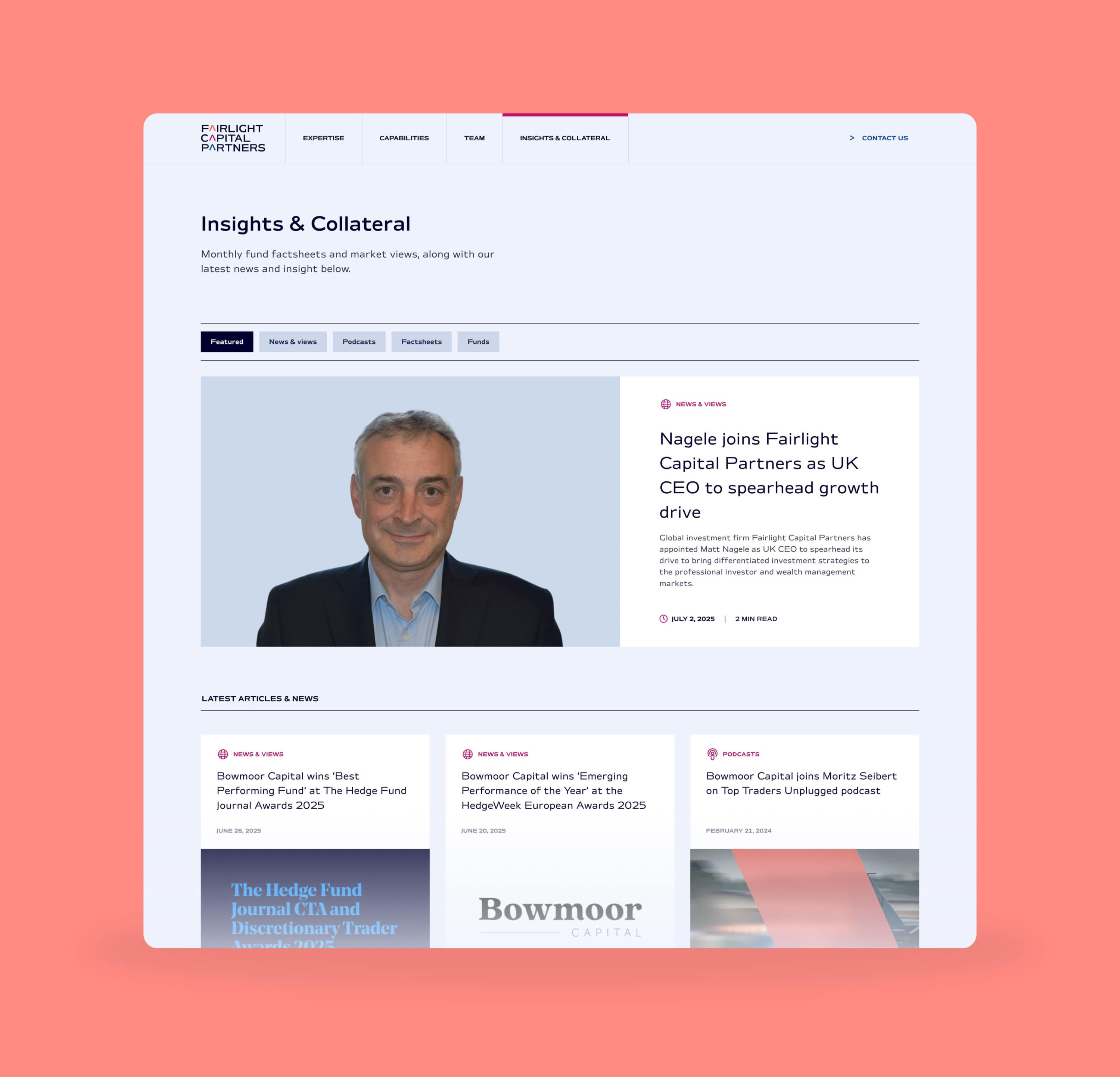 Another project working with the comms finance experts at MRM, we created a new website for Fairlight, a global alternative investment firm built on a foundation of experience, performance, and strategic partnerships.