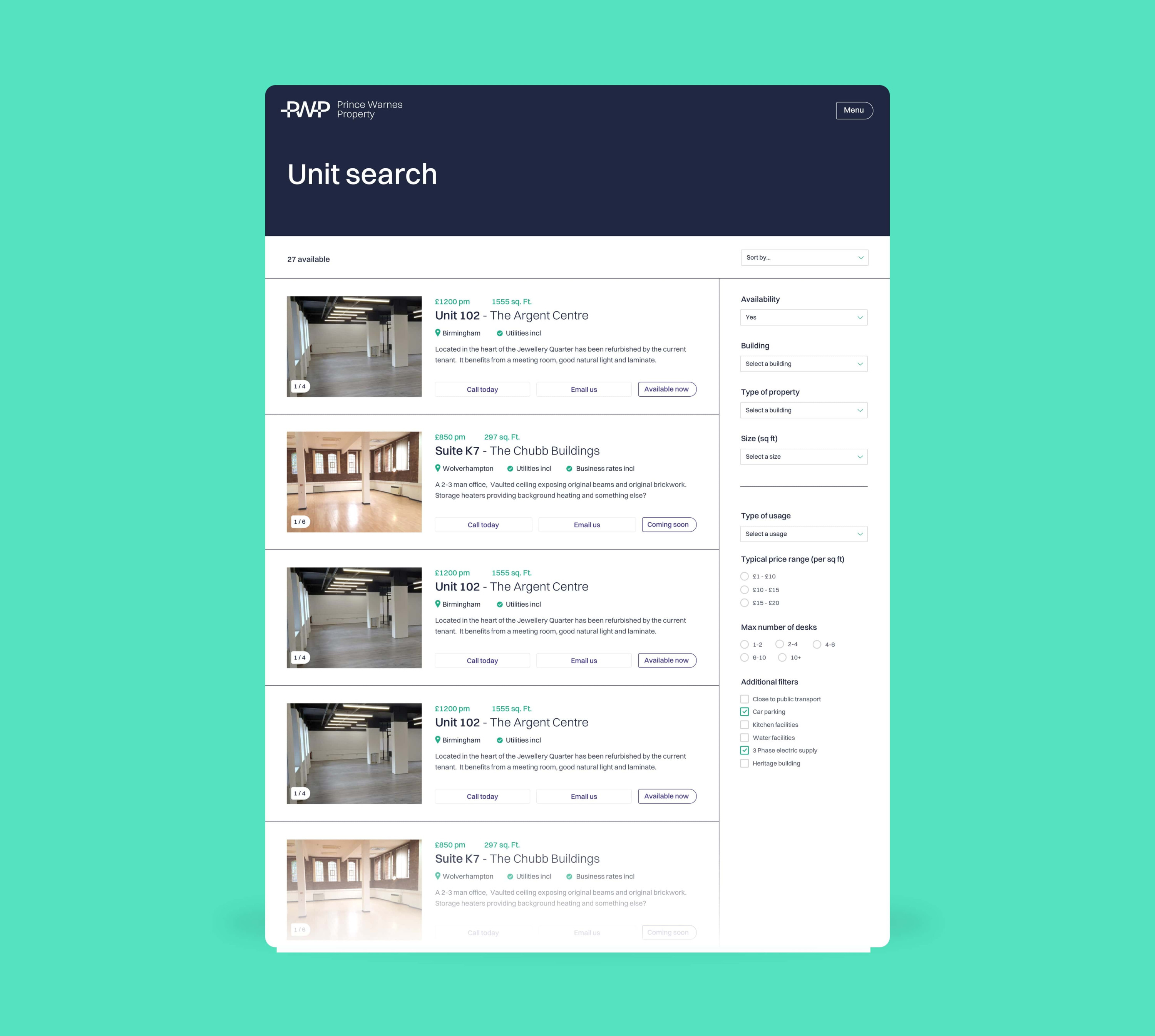 Featuring a landing page for each building, as well as an extensive unit-search and filter system, the website was a big step forward from what they had previously, which was clunky to manage, and hard for prospetive tennets to discover and use.