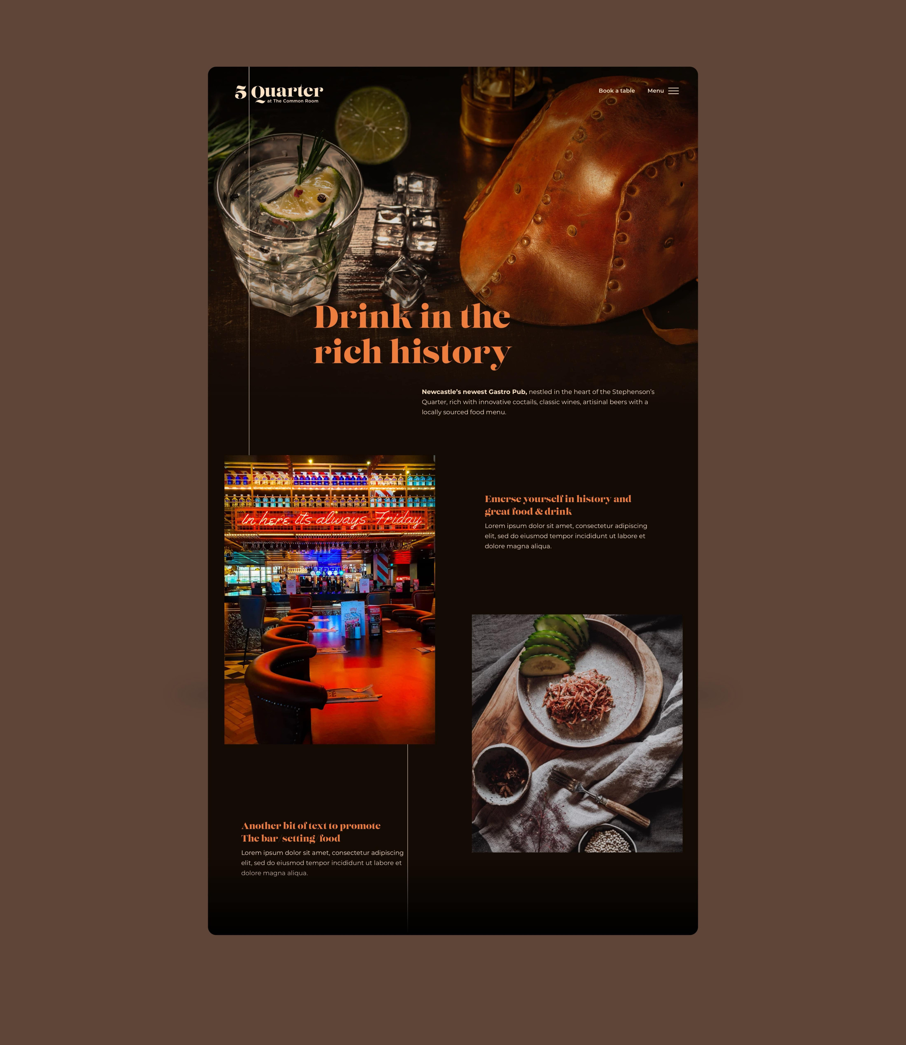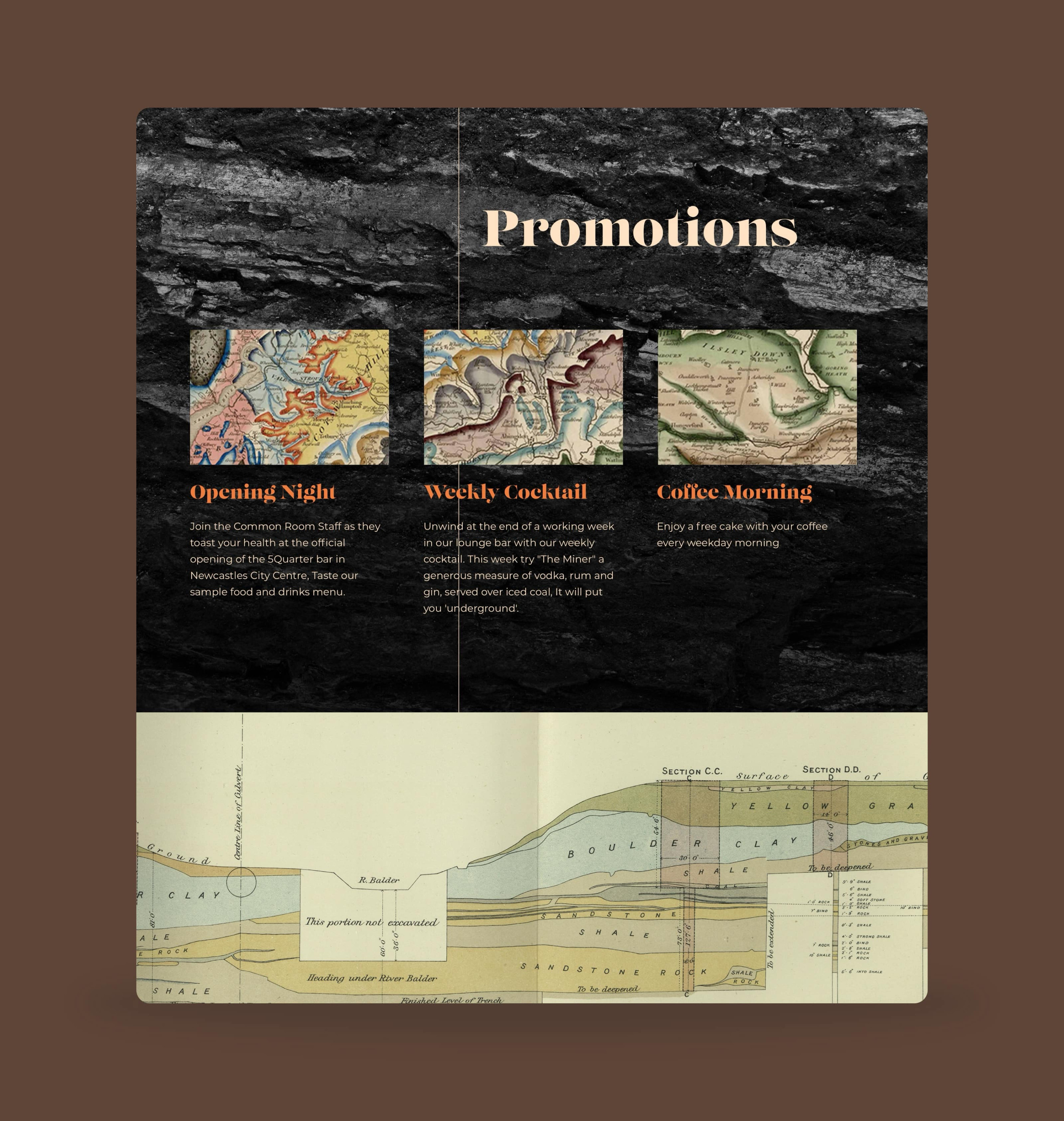 An addition 3 years into the website's life was the addition of a micro-site to showcase their newly fitted out and launched Cafe/Bar. The brand was again created by [TwentySeven](https://www.twentysevendesign.co.uk/), with them proposing the name 5|Quarter, which was inspired by one of the largest coal seams in the Great Northern Coalfield.