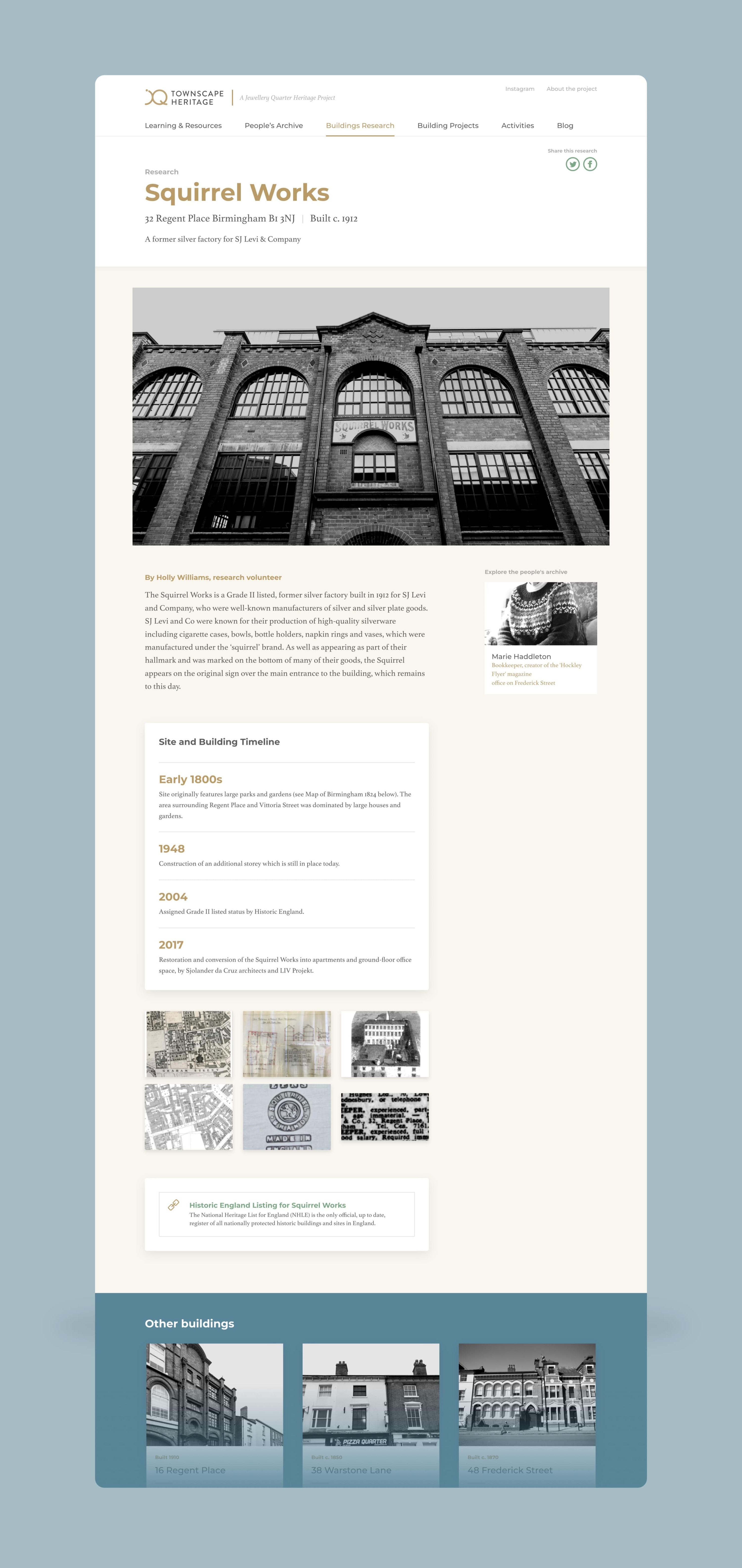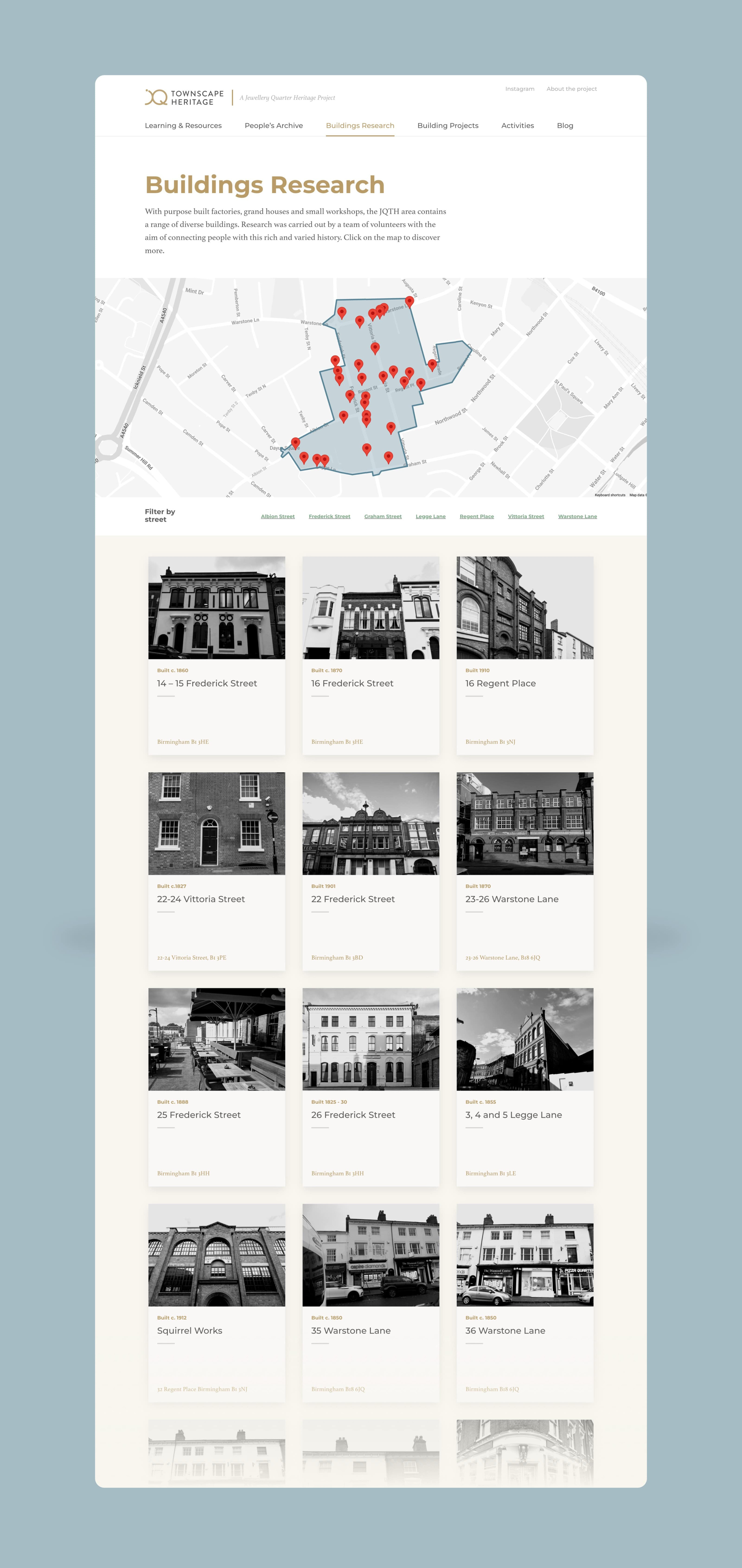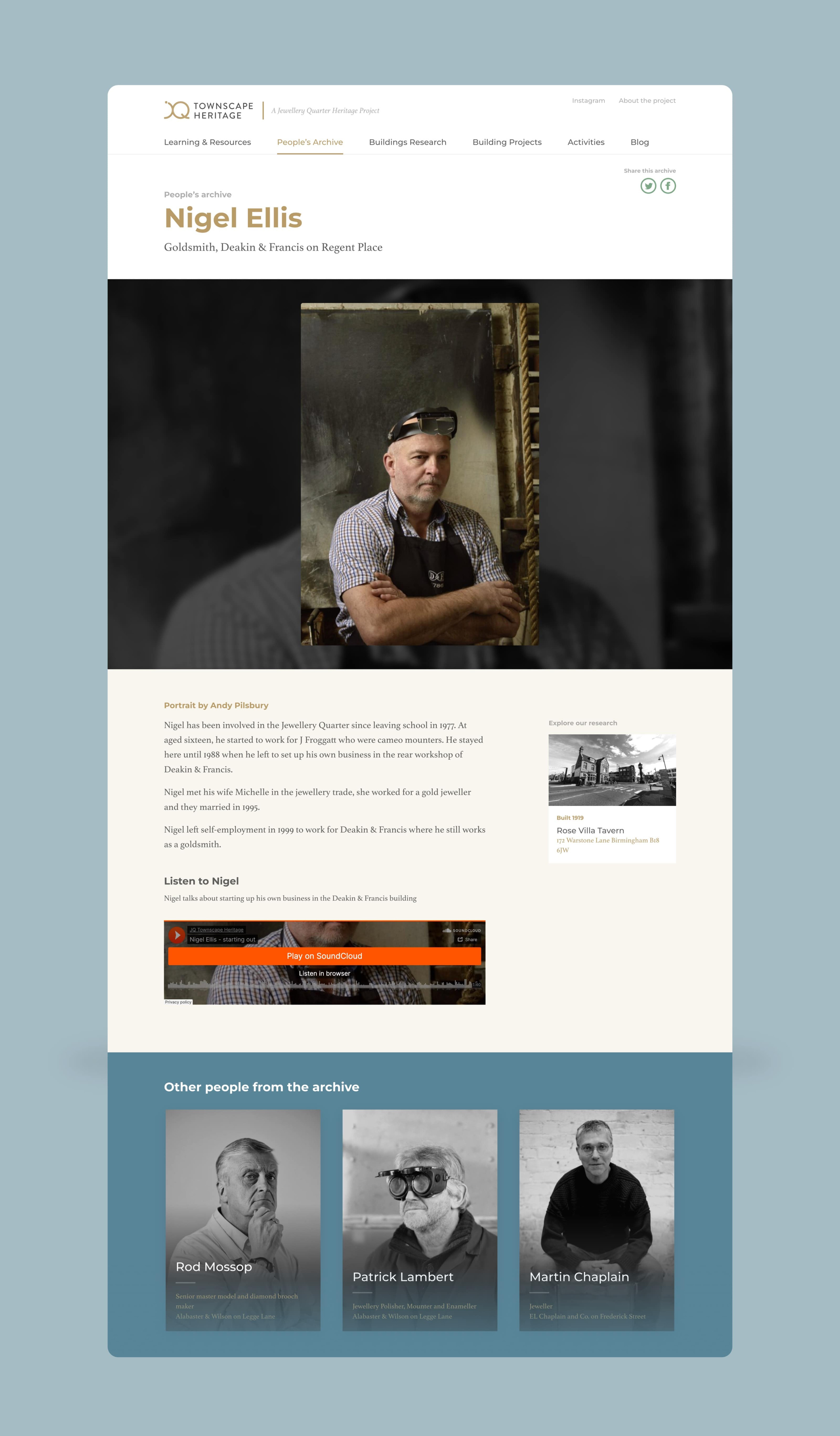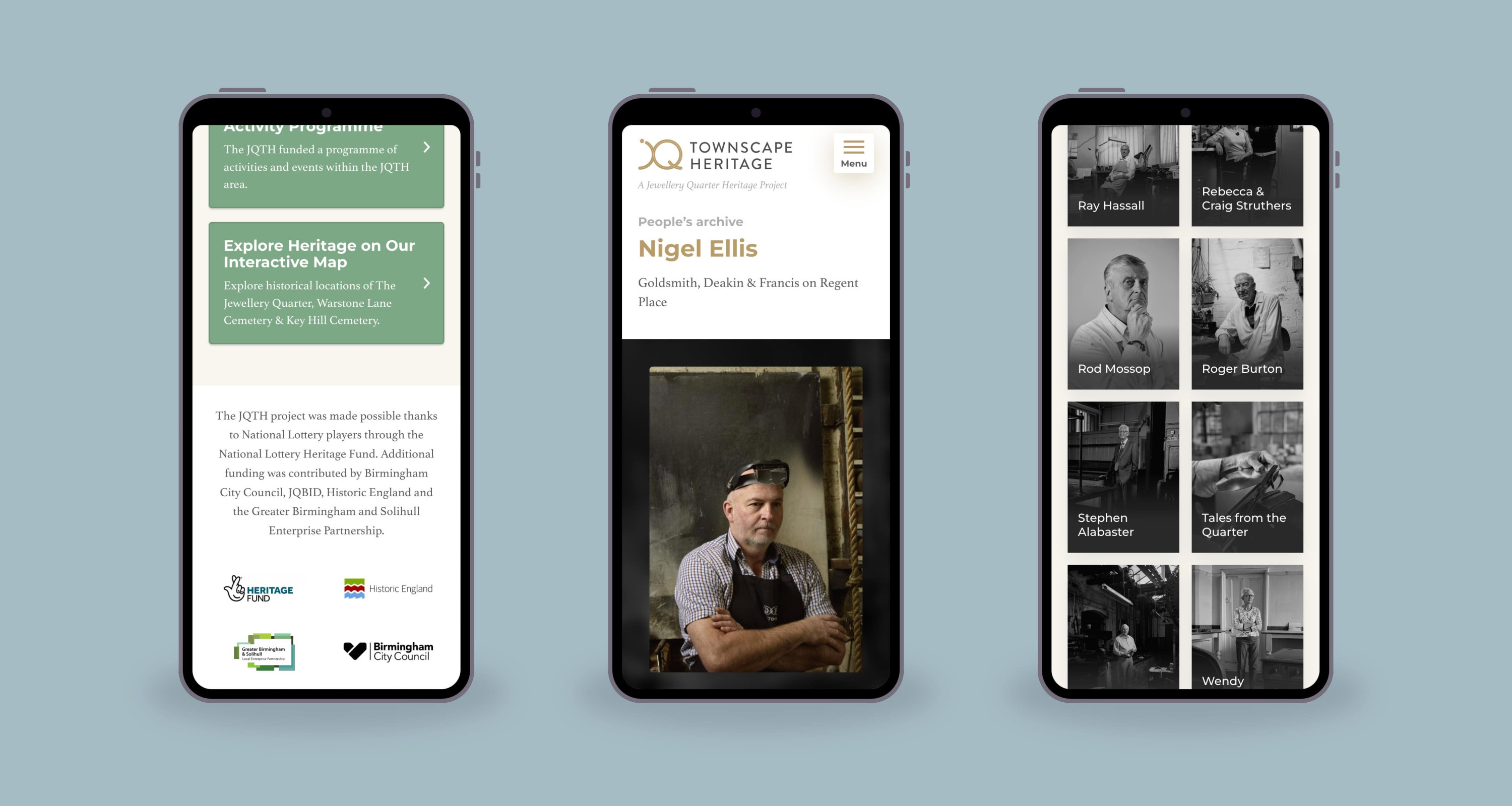 Having lived and worked in the Jewellery Quarter for many years, I was thrilled to be part of the team and work with the team to design and build a website for the project, highlighting all the events & activities, resources & information, a people’s archive, and the accomplishments of the project.